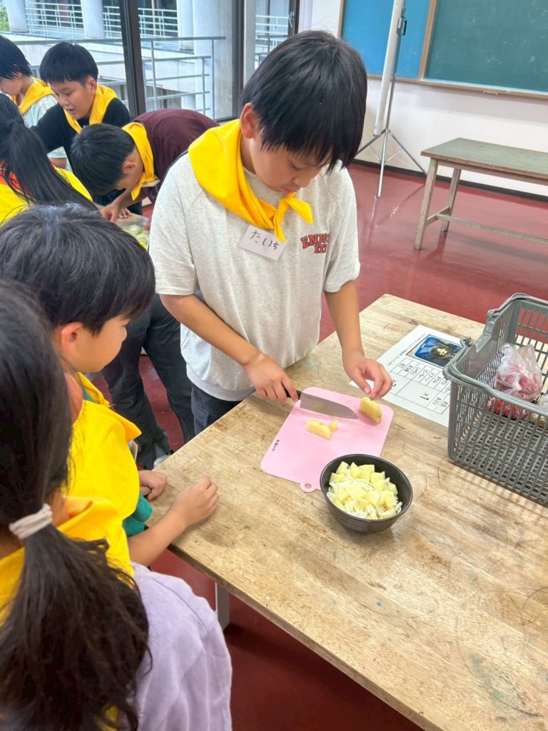 天候状況を踏まえ、安全を最優先にしながら、室内で調理活動を行いました。